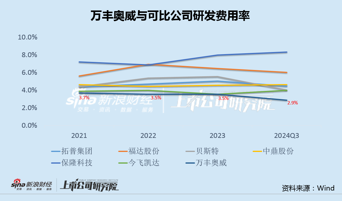 然而,即便算上研发投入更多的通航飞机业务,相较于汽零行业可比公司,万丰奥威的研发费用率也长期显著偏低。