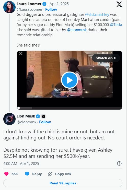 马斯克在X上回应了这些指控:“我不知道孩子是不是我的,但我不反对搞清楚。不需要法庭命令。尽管不确定,但我已经给了艾希莉250万美元,并且每年给她50万美元。”
