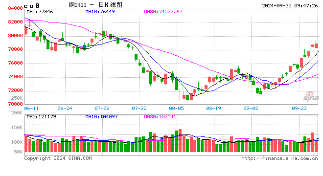 一、宏观。1、海外方面,美联储以50基点的力度开启降息周期,市场也给予了一定正反馈,美元表现偏软,海外金融市场包括美股和黄金表现较好,同时带动有色价格反弹,这也是市场风险偏好回暖的表现。但探讨为何降息50基点以及后期降息力度则更有意义,站在美大选关键节点,要么出于政治考虑,要么出于经济考虑,笔者认为如果出于经济考虑,对铜而言则是一把双刃剑,这意味着经济下滑超预期,需要更加“激进”降息和“宽松”。从点阵图来看,美联储年内2次议息会议尚存50个基点降息幅度的可能性。无论如何,当美国大选尘埃落地,美联储11月份议息也将结束,后面美将面临货币和财政的双重选择困境,届时美是否能延续软着陆预期交易会再度存疑,美股高位表现出的不稳定性对铜的利空影响或再次显现,市场在不断强化预期交易的同时,时间节点可能也会提前。2、国内方面,9月下旬新一轮调控政策同时在金融和经济领域发力,这也意味着稳增长政策再加码且力度“空前”,超预期的政策势必带来超预期的市场反馈,当然随之也会存在超预期交易的困惑,政策频出和(来年)经济预期将成为四季度商品多空博弈的主要预期差。