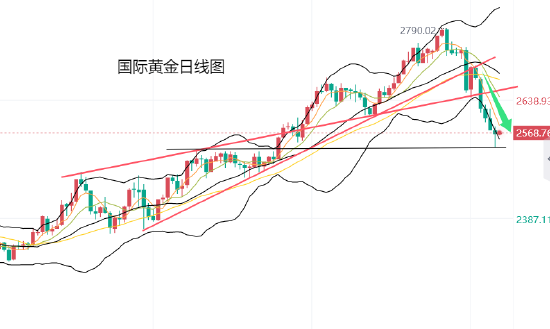 从之后的走势看,黄金延续之前的下跌趋势,在失守周线布林带中轨之后,继续震荡回落,最低跌至2536美元企稳,随后金价展开反弹,并在美盘开盘后,向上突破周线布林带中轨附近的阻力压制,最高涨至2577美元遇阻,收盘前小幅回落,目前暂时交投于2570美元附近。总体看,黄金失守周线布林带中轨后,继续下探新低,在接近我们给出的2351美元支撑附近企稳,走势基本符合预期,尽管之后金价企稳反弹,但并未改变当前承压局面。
