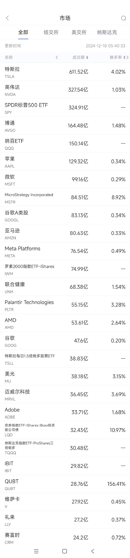 12月17日美股成交额前20:量子计算公司今年已上涨1700%