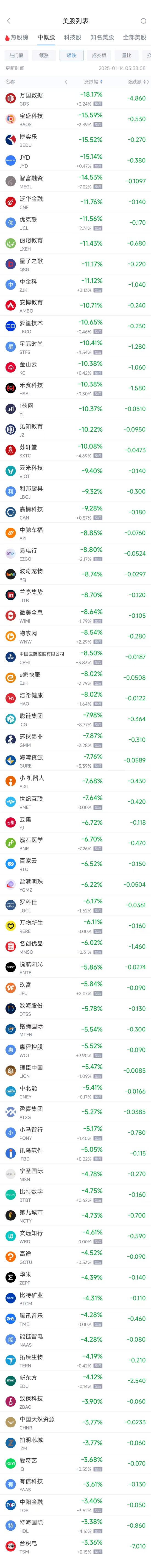 (截图来自新浪财经APP 行情-美股-中概股热门板块)下载新浪财经APP