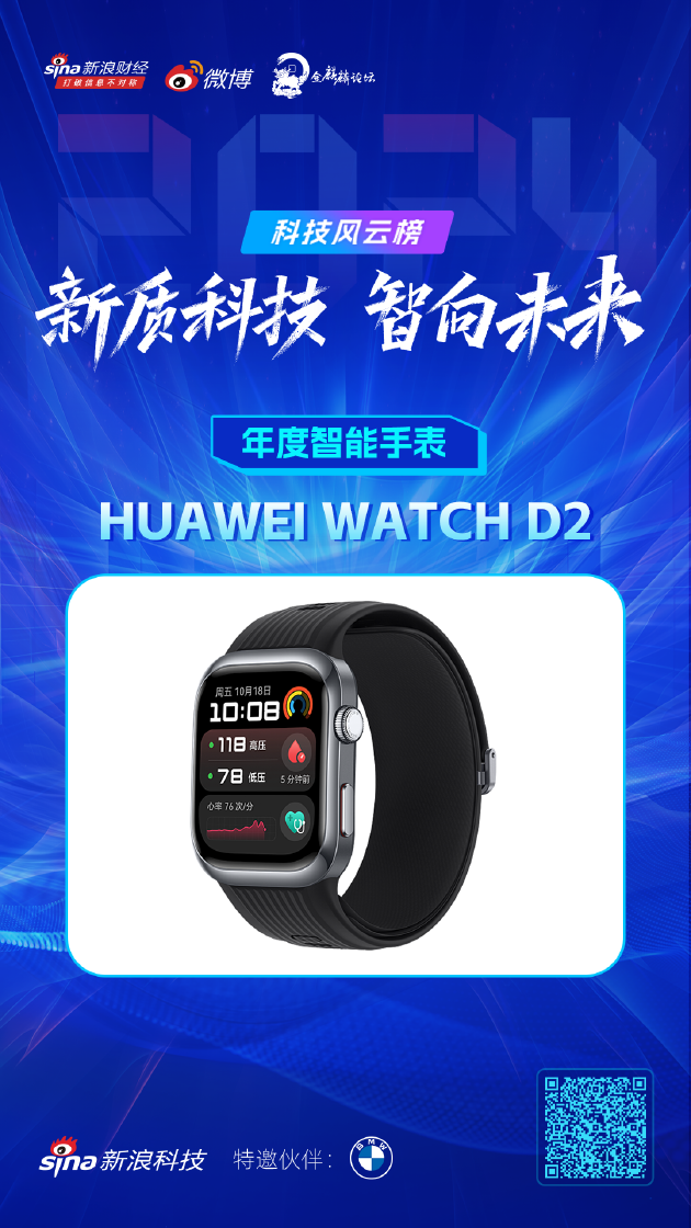 其中,HUAWEI WATCH D2获得新浪2024科技风云榜——【年度智能手表】。
