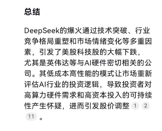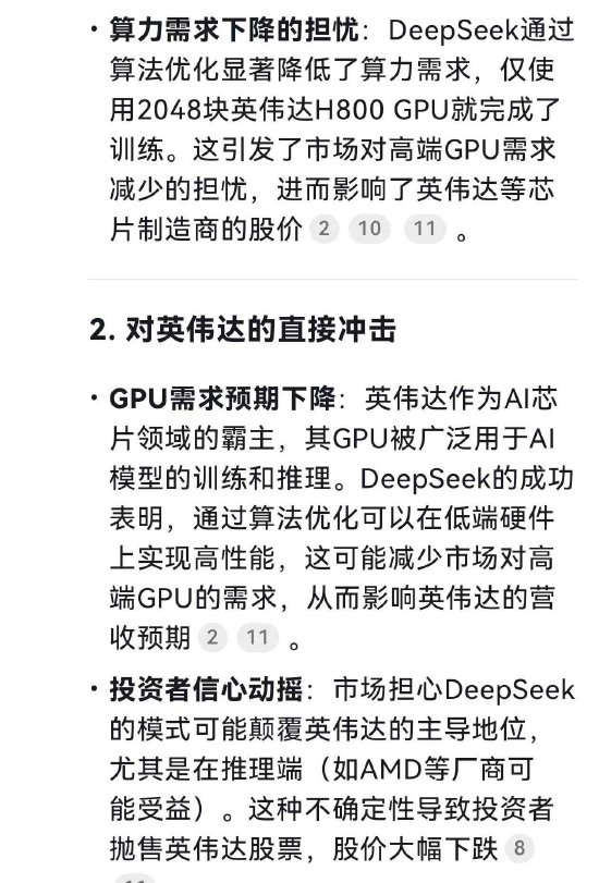 英伟达为何大跌?DeepSeek自己给出原因:DeepSeek的技术突破引发市场恐慌