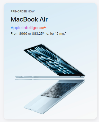 苹果推出M4芯片版MacBook Air 起售价999美元