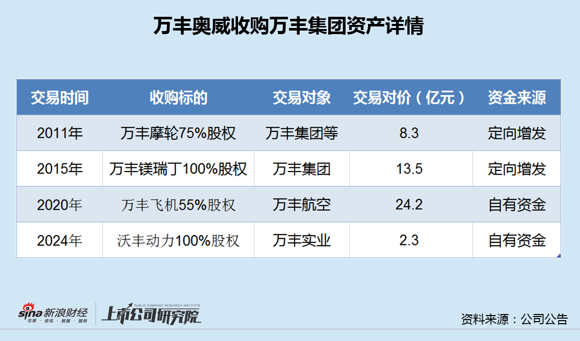 2024年,万丰奥威再次以2.3亿现金,收购万丰集团旗下万丰实业持有的沃丰动力100%股权。