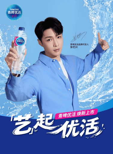 2025年7月16日,青岛啤酒健康饮品正式官宣,全能艺人张艺兴成为旗下水饮品牌――青啤优活的品牌代言人。