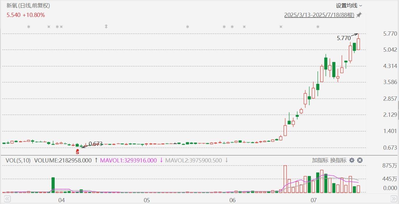 新氧(SY.US)盘中一度涨超15%,报5.77美元,股价创2021年8月以来新高。继6月收涨261.52%后,该股7月已再度累涨近80%,年内累计涨幅更是高达586%。