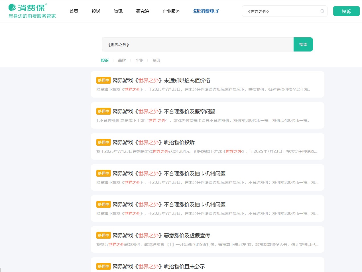 在经济层面,玩家们发起了声势浩大的“停氪罢玩”抵制行动,不仅限于《世界之外》,更蔓延至网易旗下如《阴阳师》、《第五人格》等其他热门游戏,部分玩家转向竞品游戏。相关数据显示《世界之外》的流水在此期间出现断崖式下跌。