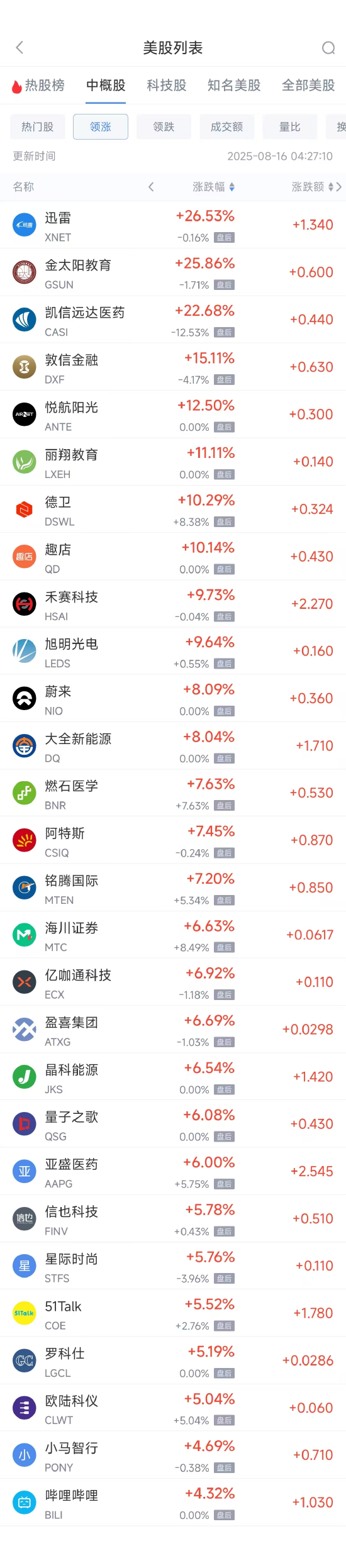 (截图来自新浪财经APP 行情-美股-中概股热门板块)下载新浪财经APP