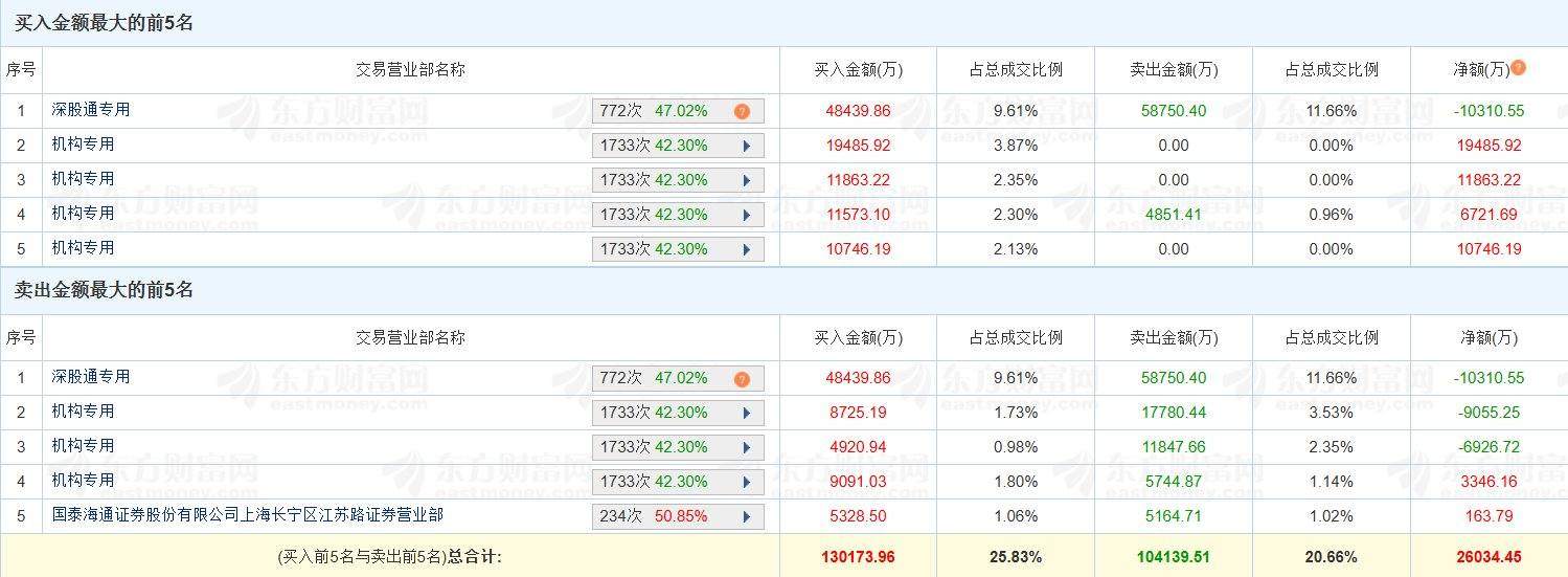 A股龙虎榜丨德明利3连板股价创历史新高,深股通净卖出1.03亿,七机构净买入3.62亿,上榜席位合计净买入2.6亿