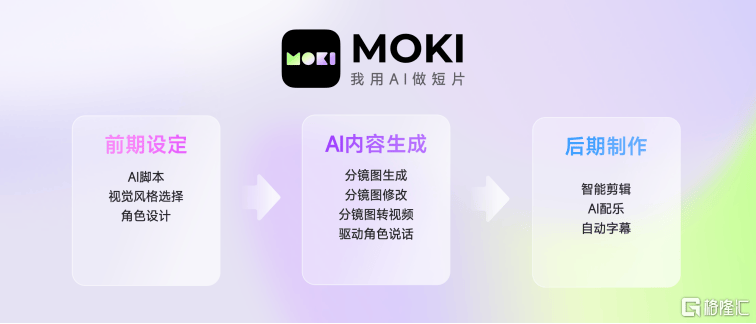 MOKI负责人表示,MOKI的核心优势在于一站式成片能力,得益于AI驱动的脚本、分镜、视频生成、配音、配乐能力,即使是没有专业背景的普通用户,也能通过MOKI轻松上手,快速创作出具有个人特色的短片。