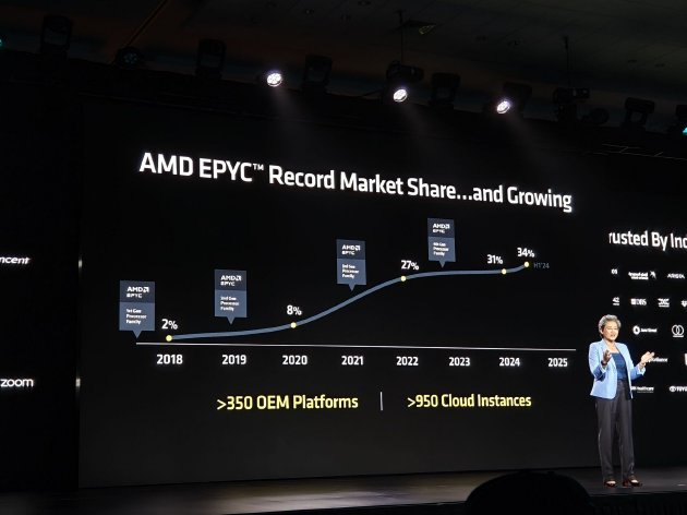 对于AMD来说,服务器处理器市场至关重要。从2018年开始,AMD EPYC的市场份额就在不断提升,如今这个系列的产品已经更新到了第五代。