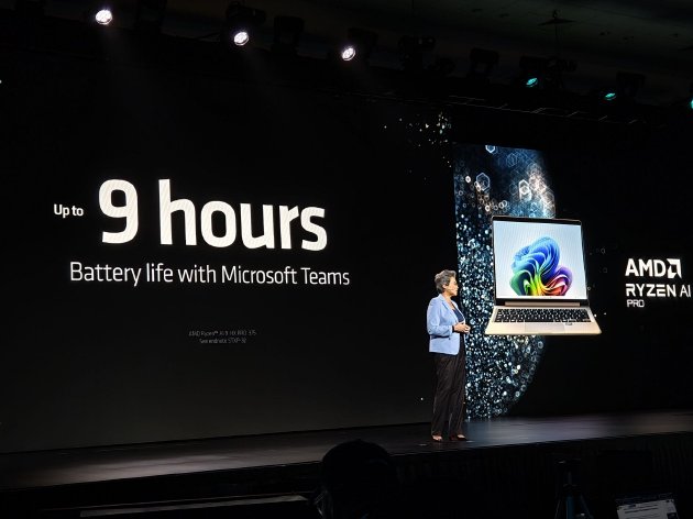 此外,AMD还讨论了产品的续航,由于采用了领先的4nm制程工艺,搭载这款处理器的AI PC一般使用时间可达23小时;连续使用Microsoft Team,续航可超过9小时。虽然没人想要连续使用Team超过9小时,但不可否认,锐龙AI PRO 300系列拥有这样的能力。