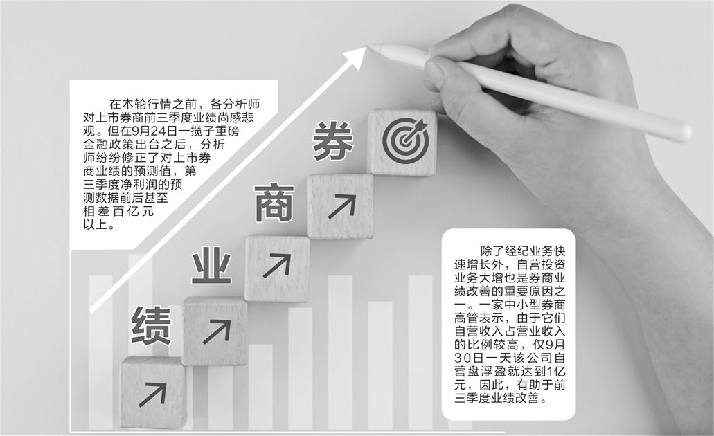 9月底以来的A股市场回暖,对券商前三季度业绩带来影响。