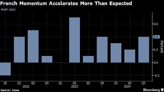法国经济改善让政府松了口气。法国政府面临预算赤字扩大,投资者信心正受到削弱。随着相对于欧洲其他国家的借贷成本上升,法国总理Michel Barnier试图通过议会推进不受欢迎的减支和增税计划。