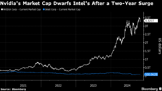 英伟达将取代英特尔,在美东时间11月8日开盘前加入已有128年历史的道琼斯工业平均指数。AI带动的涨势,在过去24个月内推动这家芯片制造商的股价上涨900%,市值与英特尔拉开差距。