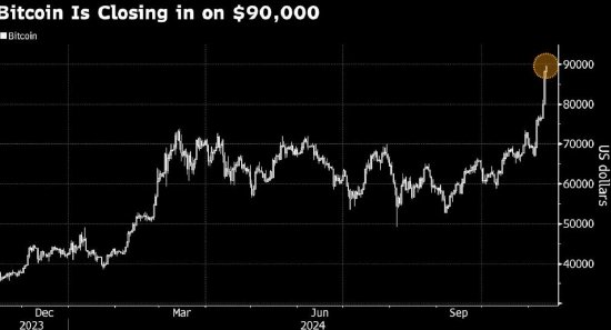自11月5日美国大选以来,比特币价格已经上涨了约30%,周二在亚洲早盘交易中达到了89599美元的历史新高。