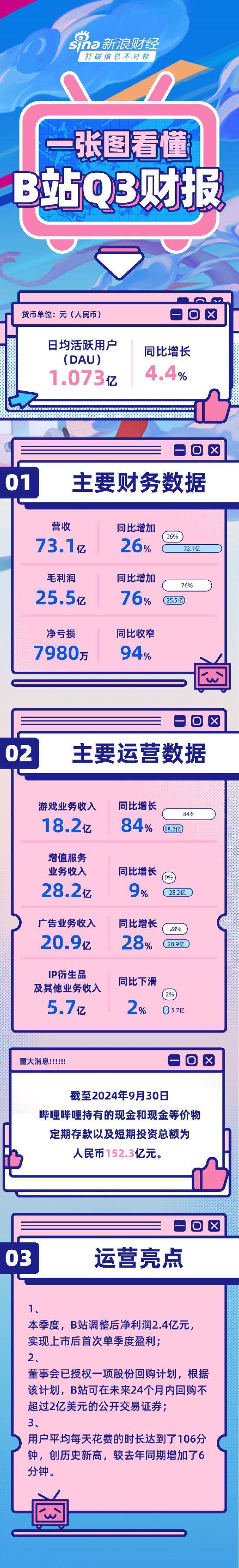 看图:B站第三季度营收73.1亿元 实现上市后首次单季度盈利