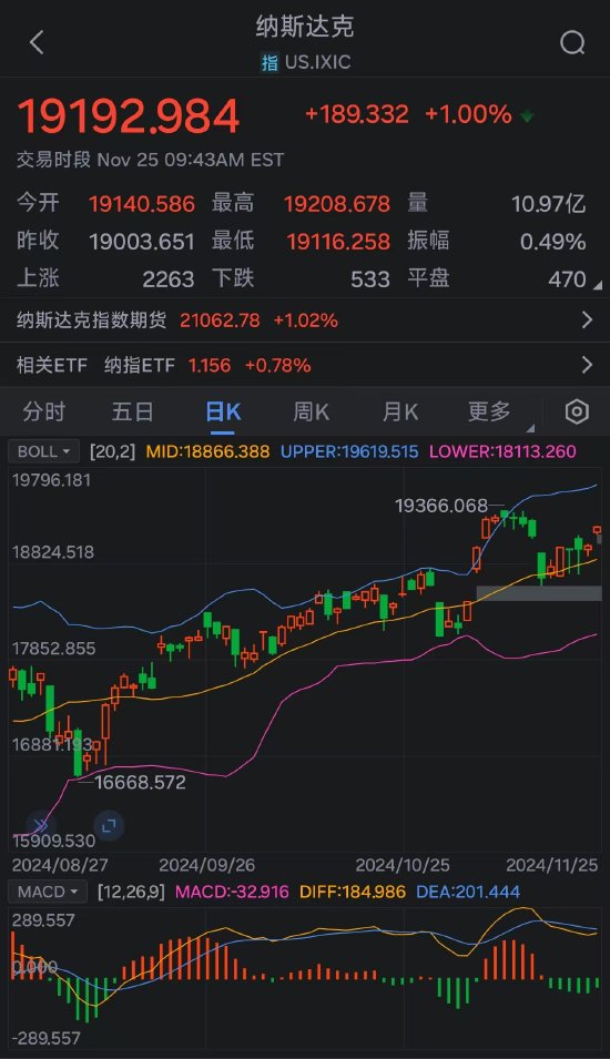 美股涨势迅猛:道指、纳指涨超1% 道指、标普500指数创新高