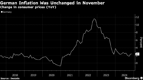 德国11月通胀率意外保持不变,支持欧洲央行继续下调利率。