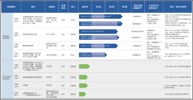 招股书信息显示,CBT-001、CBT-009均将按照国家药监局于2020年颁布的《化学药品注册分类及申报资料要求》中的第2.2类、第2.4类申报,即改良型新药。第2.2类指含有已知活性成份的新剂型,且具有明显临床优势的药品。第2.4类指含有已知活性成份的新适应症的药品。
