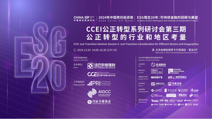 2024年12月4日,2024年中国责任投资周(2024 China SIF Week)系列活动:CCEI公正转型能力建设研讨会第三期:公正转型的行业和地区考量成功举办。