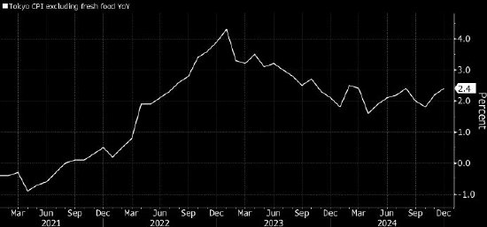 日本内务省周五公布数据,东京扣除生鲜食品的消费者价格上涨2.4%,涨幅高于前一个月的2.2%。该数据为8月以来最高,但略低于经济学家预期的2.5%。