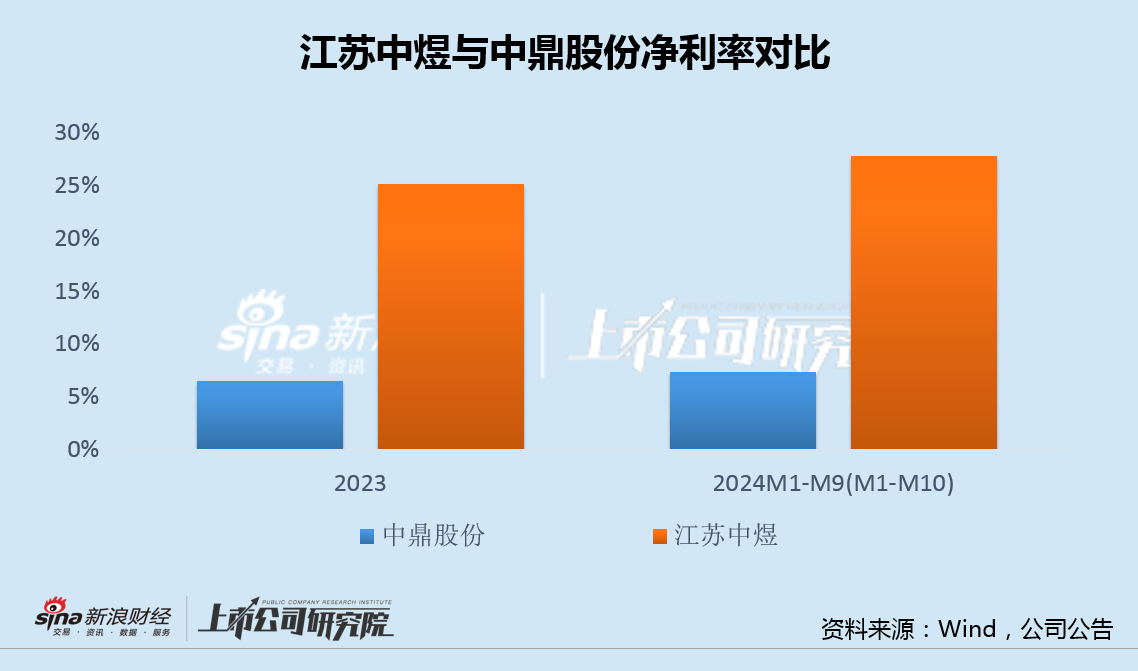 公告显示, 2023年全年和2024年前10个月,江苏中煜净利率分别超过25%和27%;然而,2023年和2024年前9个月,中鼎股份净利率仅为7%左右。也就是说,江苏中煜的盈利能力远超行业龙头公司。