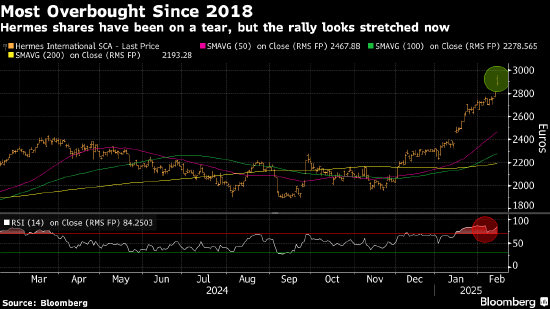 欧洲股市今年已上涨9%,跑赢美股,不过该基准指数目前处于所谓的超买区域,使得进一步上涨的前景更具挑战性。交易员也在密切关注与美国可能的贸易紧张局势。