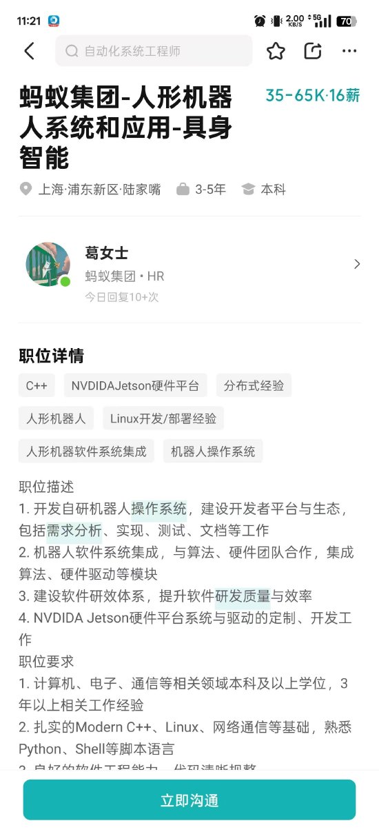 《科创板日报》2月19日讯,近日有招聘平台信息显示,蚂蚁集团开放招聘具身智能人形机器人系统和应用等岗位。记者从知情人士处获悉,相关招聘主体为上海蚂蚁灵波科技有限公司,该公司于2024年底注册成立,注册资本1亿元。“蚂蚁确实在做具身智能。”上述人士表示。