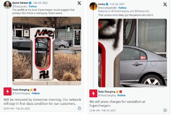 超充站被涂纳粹标识,特斯拉威胁要起诉破坏者