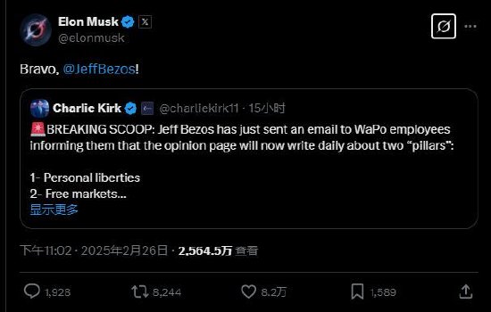 向特朗普靠拢,贝佐斯宣布旗下报纸大变革,马斯克喝彩