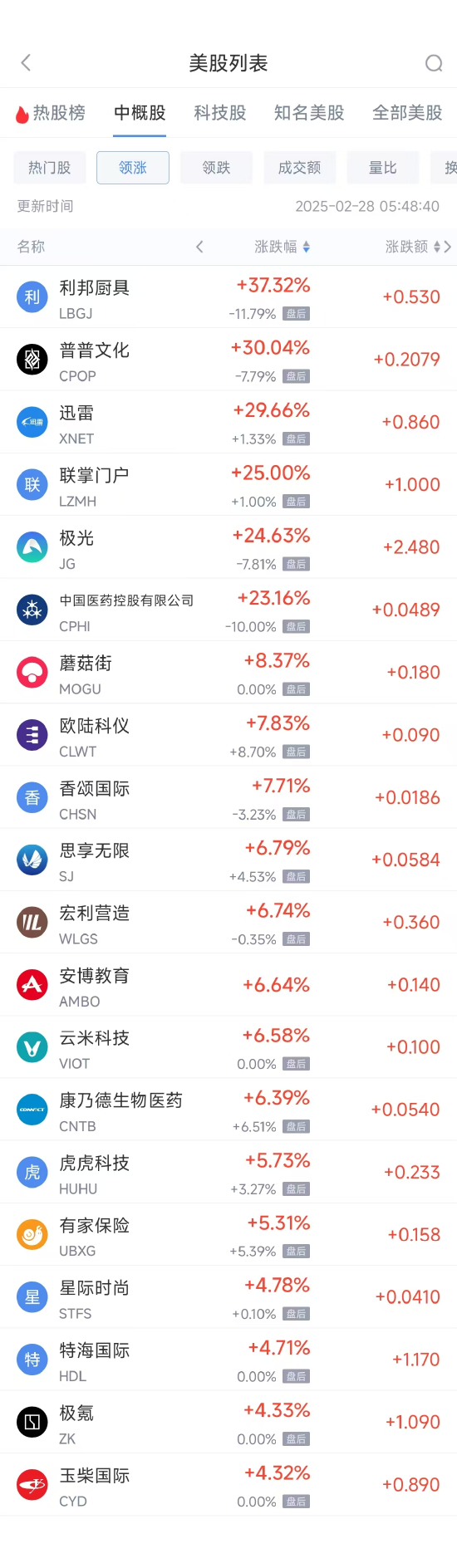 (截图来自新浪财经APP 行情-美股-中概股热门板块)下载新浪财经APP