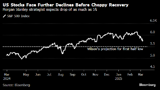 摩根士丹利策略师Michael Wilson称,在对特朗普贸易政策打击企业盈利以及财政支出减少的担忧拖累下,美国股市有可能再跌5%。